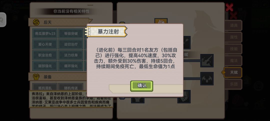 6、检查主战宠物身上暴力注射是否存在,如不存在则主战宠物退队,关闭秘宝“时之细语”,本体携带“三尺神利”远程攻击触发时停,主战宠物入队,走回合挂上暴力注射。