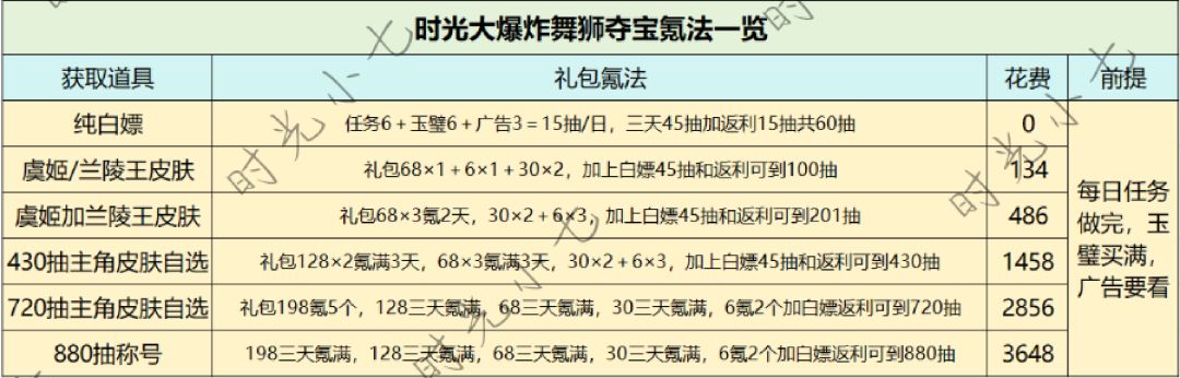 时光大爆炸:舞狮夺宝氪度一览!!!