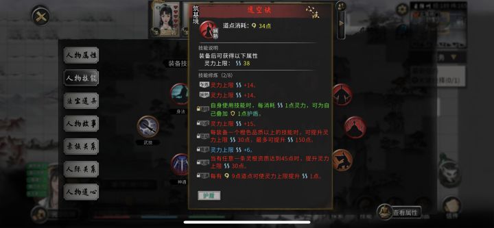 前期不要送太多功法让她学,NPC有技能格子的