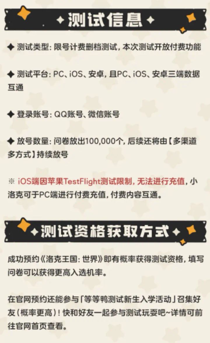 🌟测试类型:限号计费删档测试,本次测试开放付