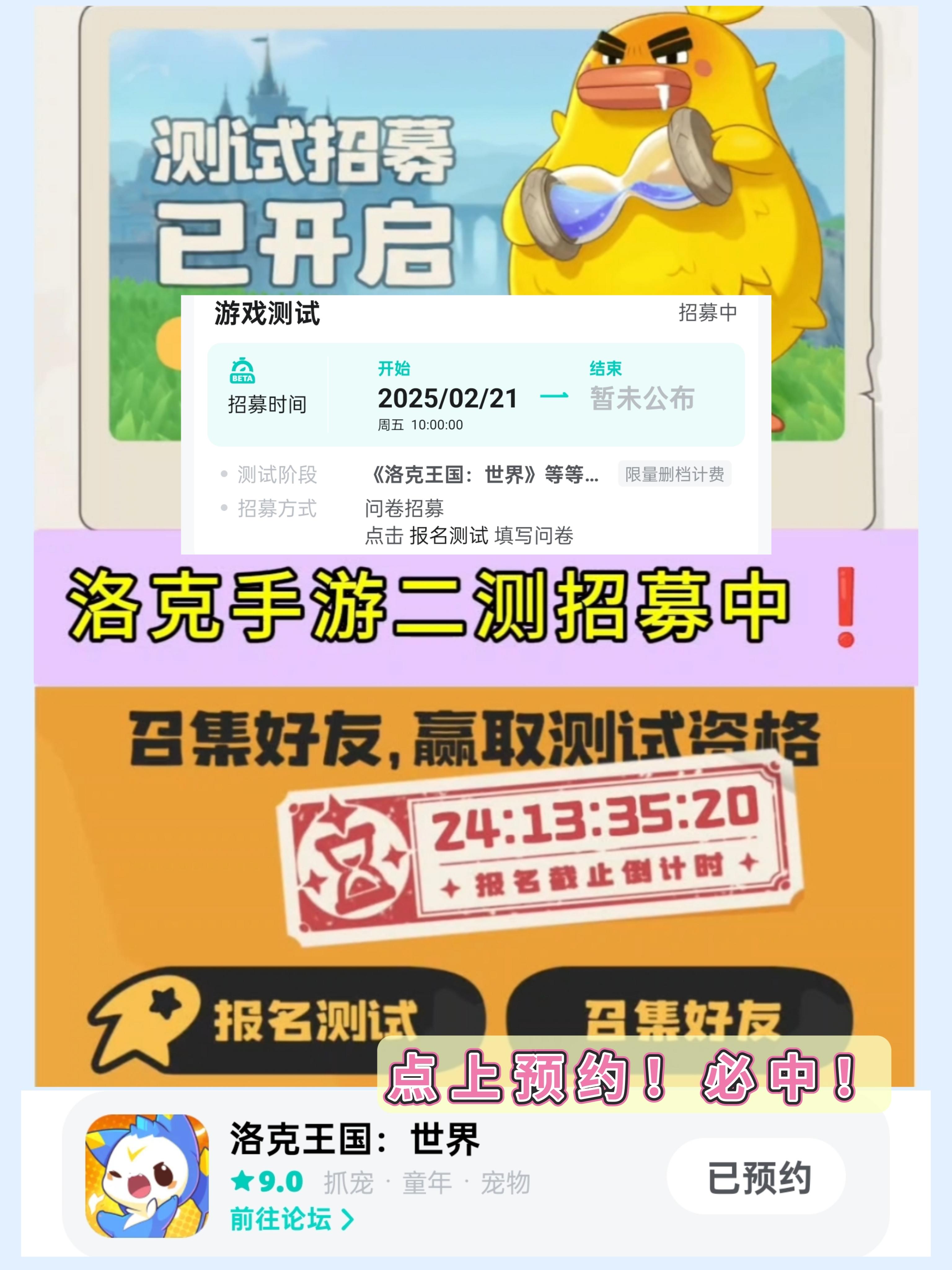 各位小洛克们,《洛克王国・世界》手游二测“等等鸭测试”招募开始啦!
