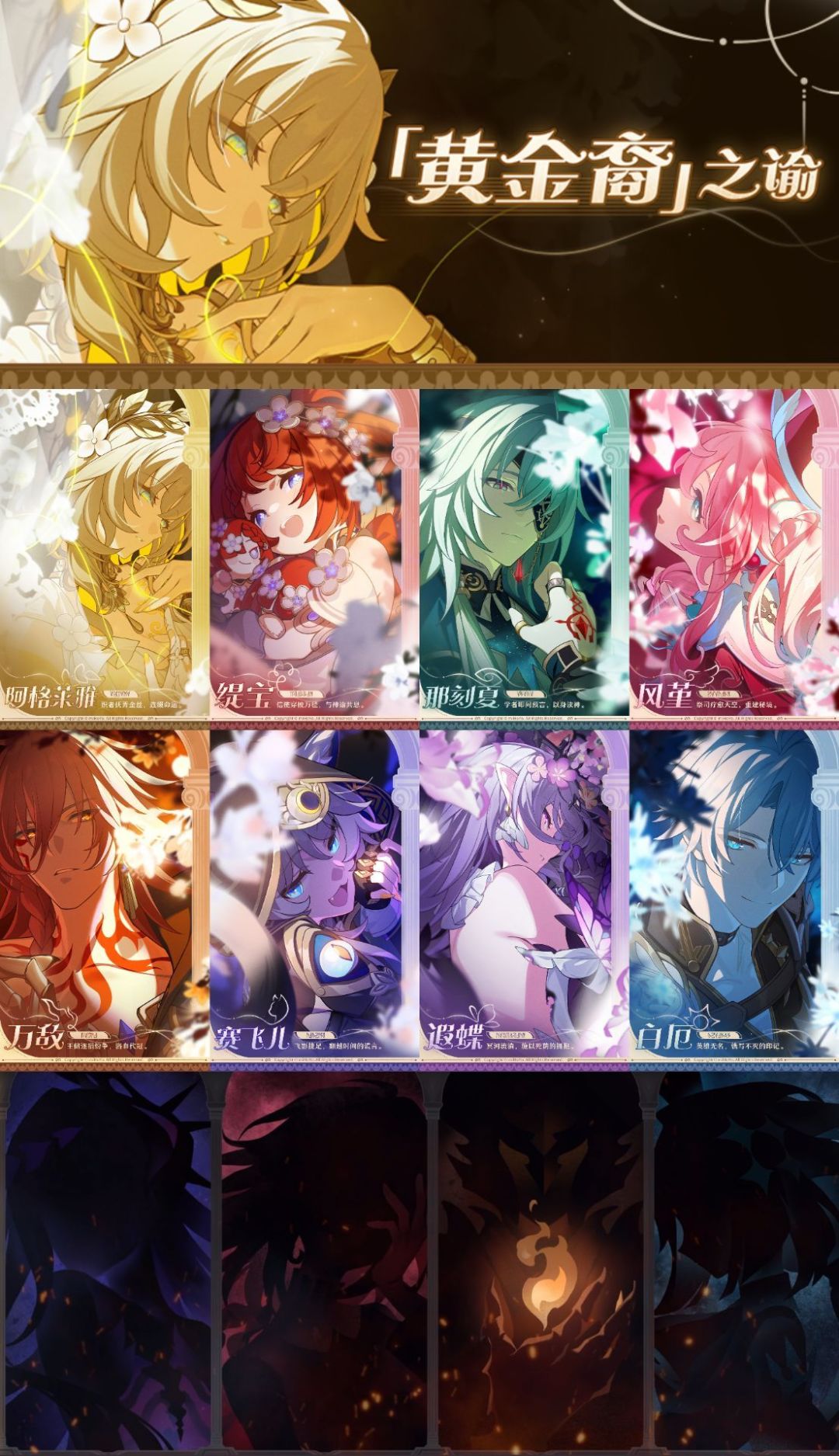 这样的话已经爆料的黄金裔有十位了,还有两位翁法罗斯就结束了(bushi),第一位看背影好像华,难道说?!欢迎大家来讨论哦~