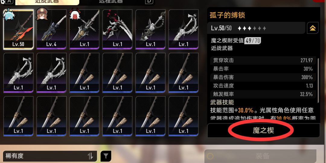 顺便记得,在配置武器界面可以选择配置武器的魔之楔,可以提升相当大的战力!(这也是后来发现的o(TヘTo))