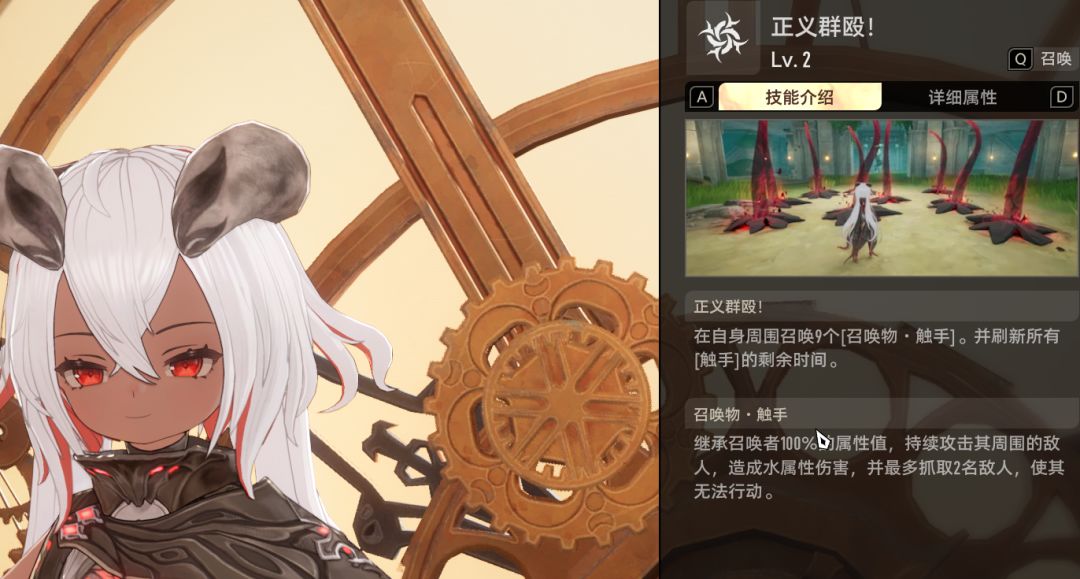 然后就是她的大招了,召唤触手,即使不升等级也可以强行抓取控制主敌人,群控抓取!为主控输出角色创造非常好输出环境。高难低难都非常好用。甚至是前期资源紧缺不升她也可以上场的主要原因!(这下五星不如四星了233)