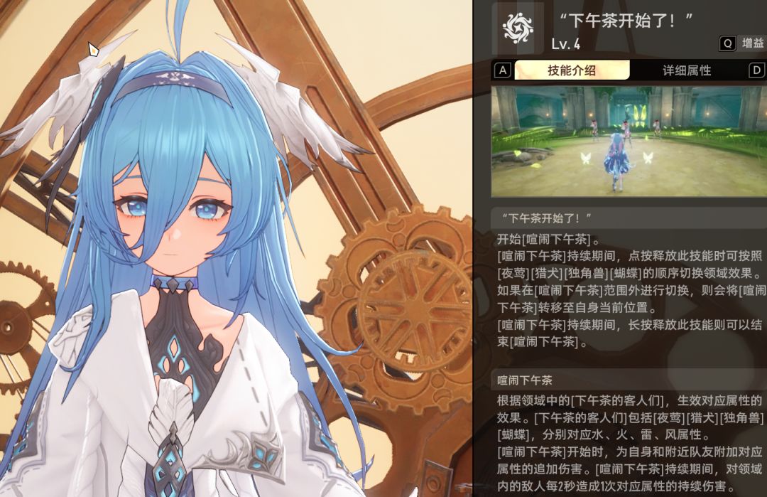 然后就是四星的塔比瑟,她算是披着四星皮的五星,首先是小技能,不但能攻击一次,还能给队友加血加buff,算是顶级辅助条件的