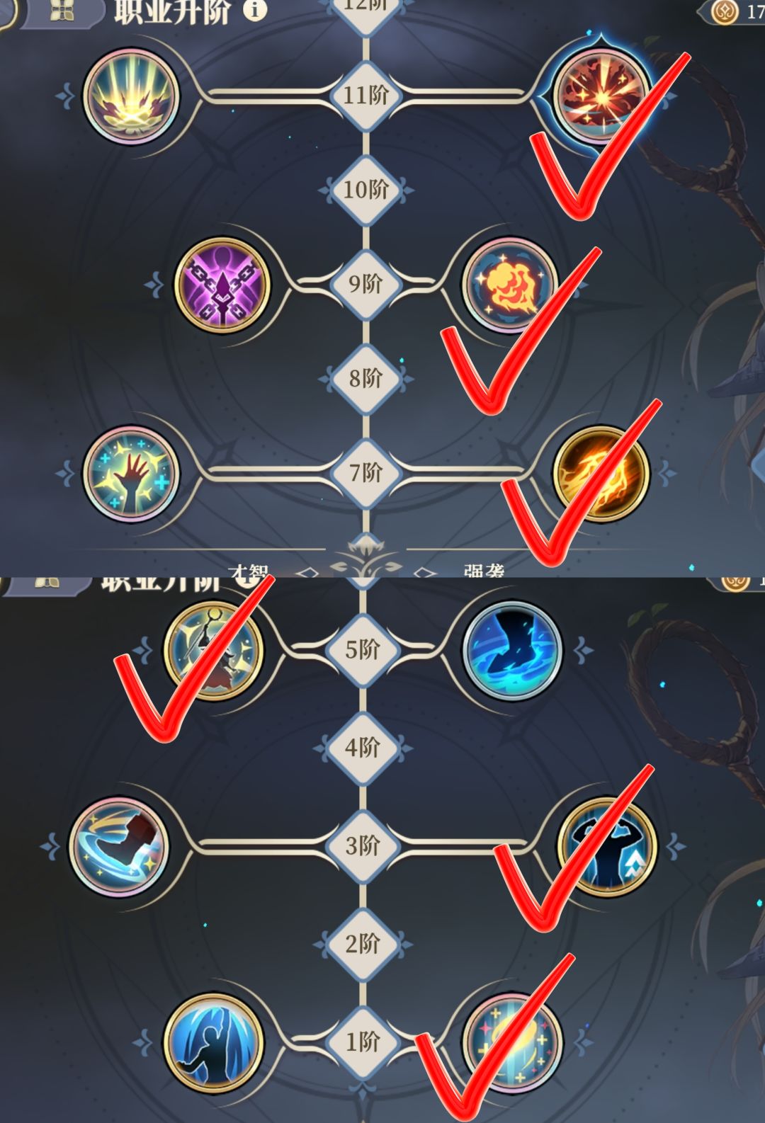 五阶:左+右丨 本身作为输出职业,2个被动增加攻击建议都点,只选一个选左边。这个层级点法有争议,右边适用性更广,但是左边在特殊情况下有奇效,看你怎么取舍了。