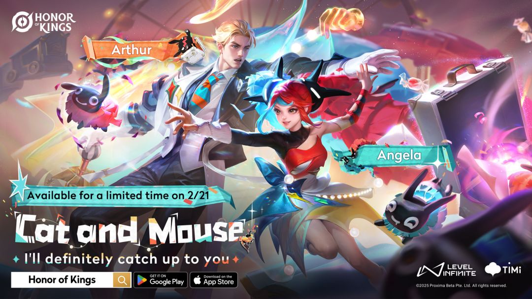 安琪拉、亚瑟的情侣皮肤【追逃游戏】已经上线国际服了!喜欢的玩家别错过~
