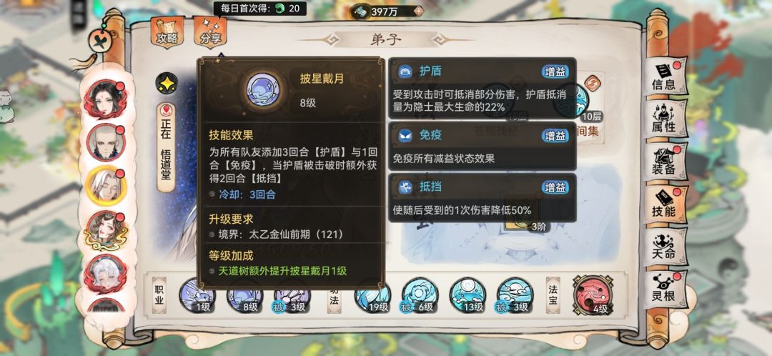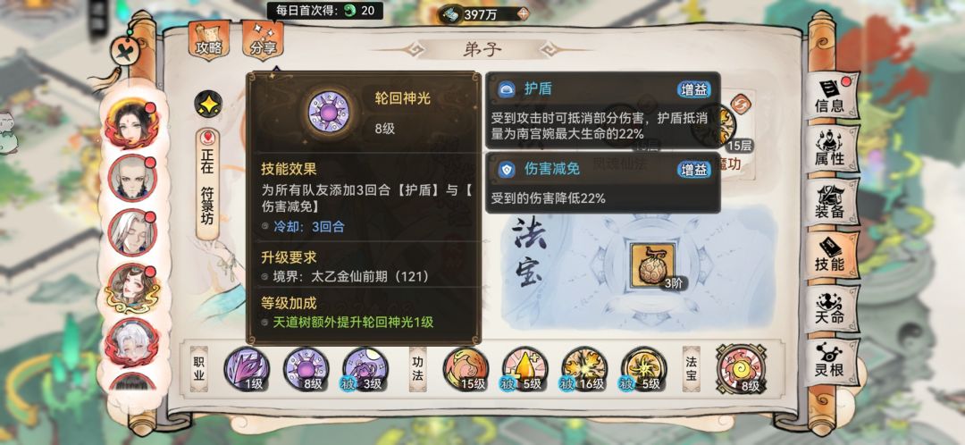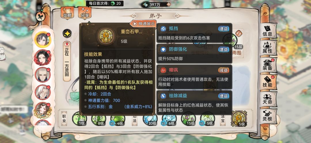 像你们那些脆皮输出之类的可以带刑天,这个可以锁血的,我玩的没金灵根就没有带(三七练度不够没上)