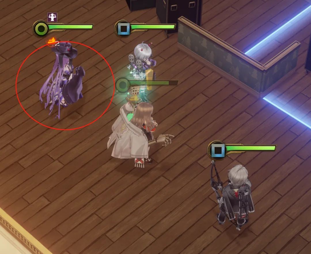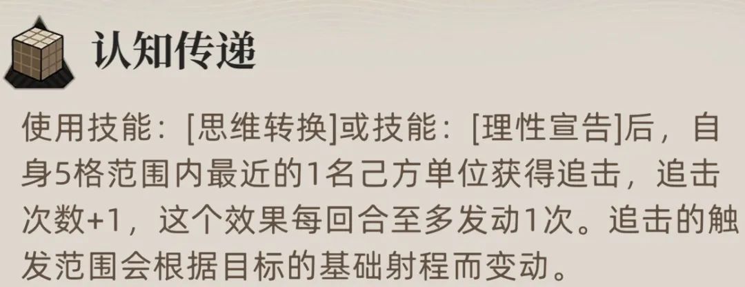PS:目前经过实测这个给友方1次追击的优先级第一还是看位置的,例如上图中的这个案例,ABCDEFGH这8位友方其实距离库珀的位置都是2格,而无论如何库珀在原地使用技能后都会给A这个位置的友方1次追击,不管这个位置换成谁皆是如此,因此大家可以以此来作为参考,而下图则是一个实战案例,其中维一标红框的地方就是库珀第一优先会给追击的位置。
