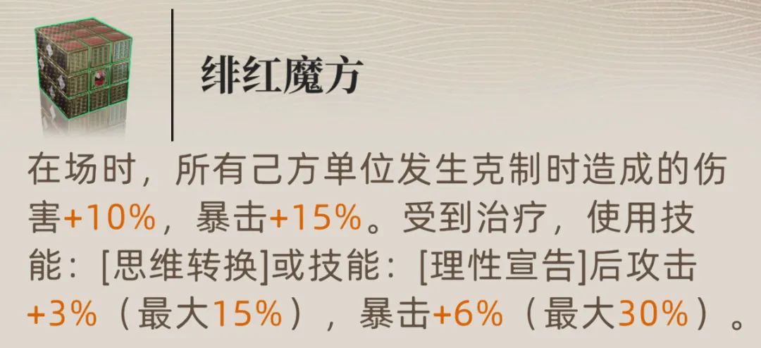 问题9:库珀天赋增伤如何才能最快积累?针对这点其实1回合即可积累满5层,例如首先带上瑛美等可以实现1次第1回合治疗的奶妈,然后让库珀使用1技能打到3个敌人后即可在回合结束时,自动受到瑛美治疗后积累出5层的增伤buff,之后这个buff便能持续全场。问题10:库珀如何做到满暴击?最简单的办法......带个林芳和维奥拉即可......以上便是今天攻略内容了,如果大家还有任何问题的话都可以添加维一的私人微信heerweiyi1015进行咨询同时也欢迎加入异象回声水友讨论群,感谢大家的支持!