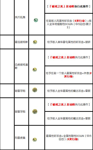 「白虎」行动和技能