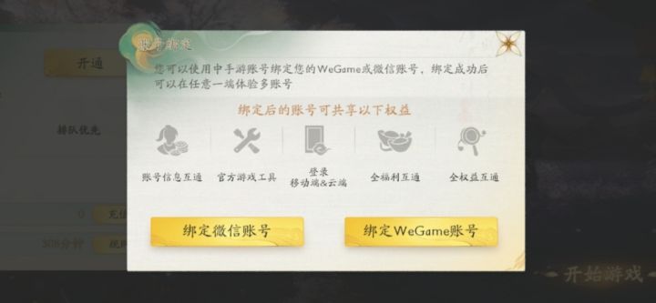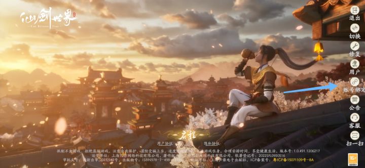 1. 启动电脑或手机或云游版的仙剑世界,如图所示在登录界面右侧边栏找到“账号绑定”功能并打开。