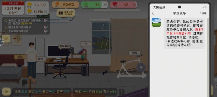 因为一开始是没那么多钱开写字楼的,跑图的时候捡垃圾攒着价格高的时候出,一开始做饭只买白菜,能对话的都对,名气值非常NB!!!前面就跑图玩做设计,有钱了开写字楼正常买家具全部买光,这样你每回合都会白嫖健康值,然后这个时候其实游戏已经简单起来了因为不缺钱,不缺钱了再去开农场全部开完,多买化肥然后种地只种水果切记!只种水果!那蔬菜卖不到钱