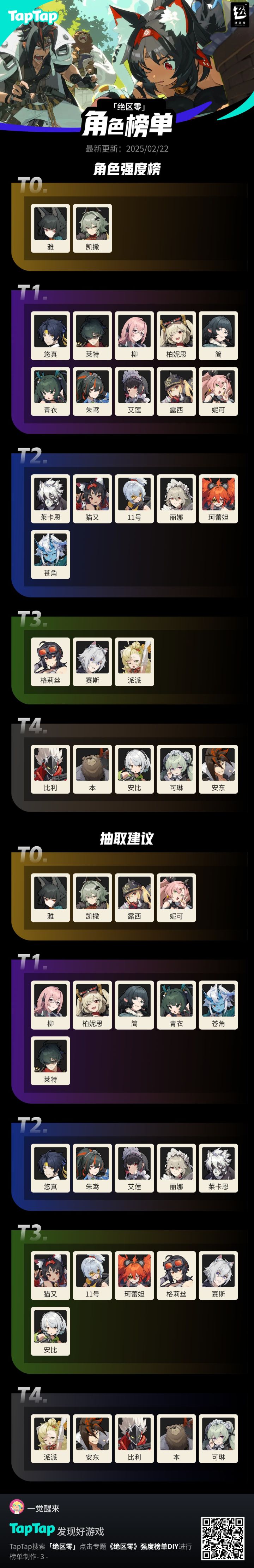 T0(用这等级角色,没有数值,没有机制!!!全部是我的努力和汗水!!!!!哪超标了!!!!)纯粹的数值,纯粹的机制。有了她就有了整个 绝区零 。 凯撒:聚怪增伤又击破 ,超强护盾无人破。爬塔攻防不二选,傲视群雄万金油 雅:伟大无需多言让我举一下三个例子“我集满六颗豆,你不就炸了吗?不对,我还没点满六个,你怎么就没?”“自从有了雅,强度榜