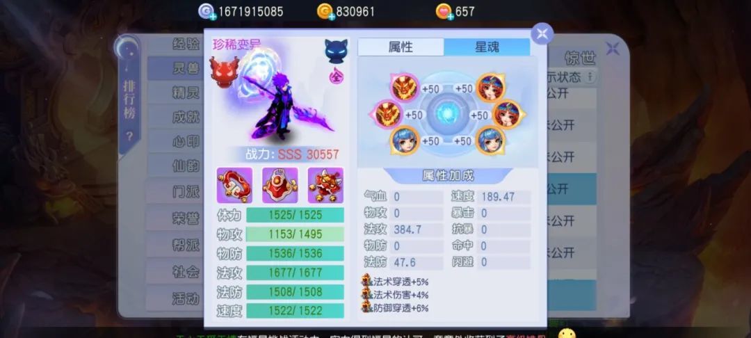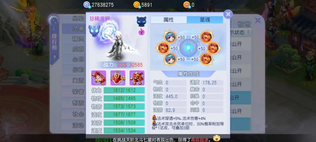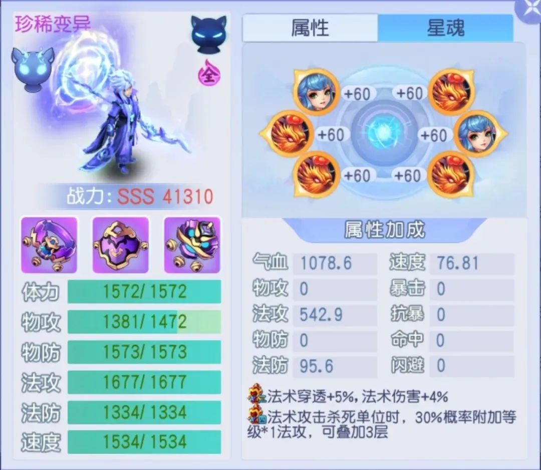 星魂属性法攻和速度这两条属性非常完美,契合这只宠物!