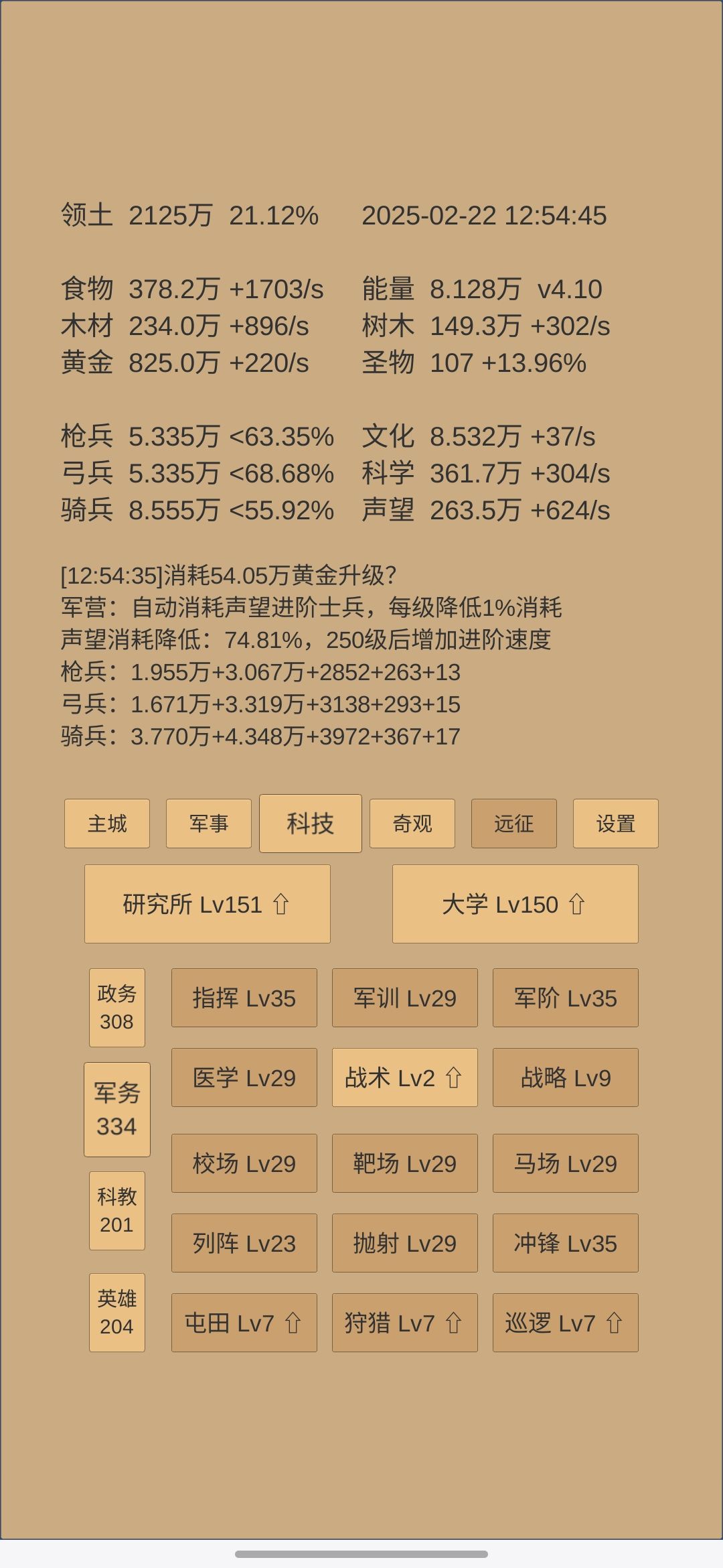 3.兵事堂45级以后基本就超过四阶数量,所以这个时候保持速度1000就可以,先升军阶再升战术,拖延时间等战力上升,debuff越晚越好