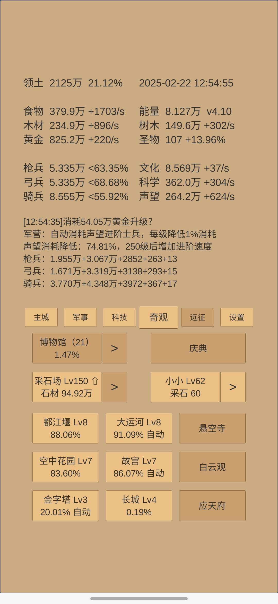 5.同一资源奇观均匀升级,等博物馆提升降低消耗,现在基数比较大了,不急那一两级