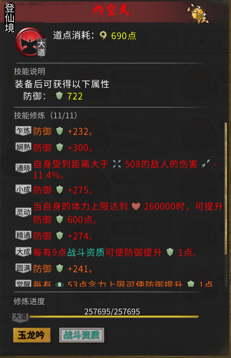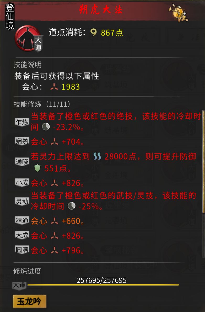 剩下的录和决只要堆上限即可 录也可以加几条丹药冷却之类,决套装用玉龙吟,录套装用破阵子 来到关键环节