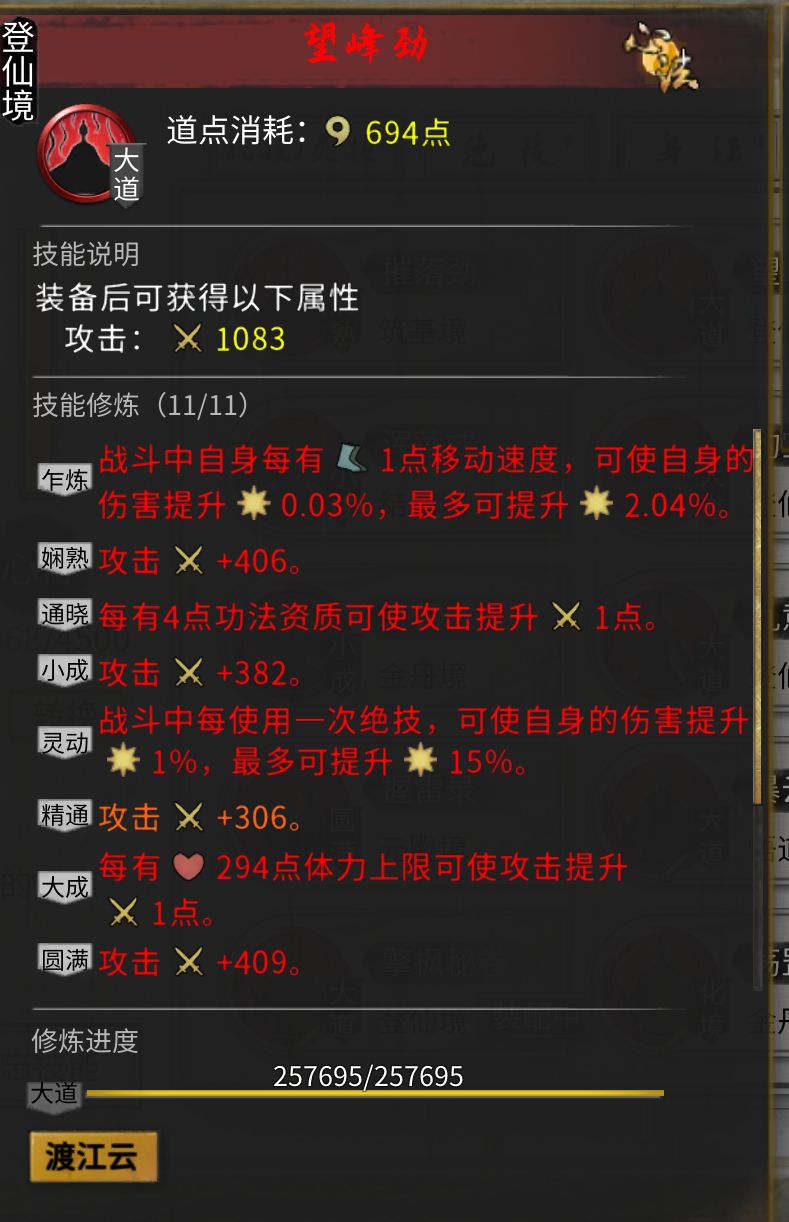 关键词条:移动速度加伤害 功法资质加攻击 每使用一次绝技提升伤害 体力上限加攻击 攻击速度低于自身提升伤害 攻击距离大于560码的敌人提升伤害