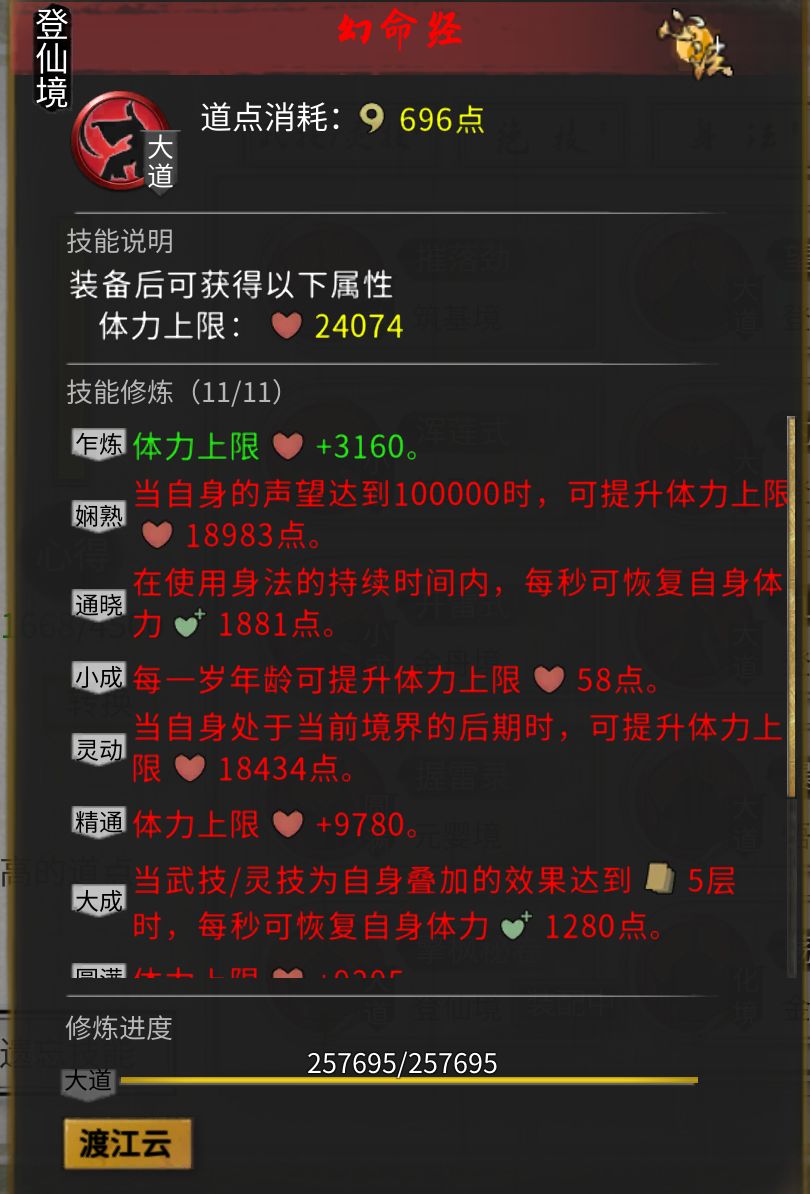 关键词条:身法持续时间回复体力 武技灵技叠加五层回复体力 药材资质加生命 功法资质加生命
