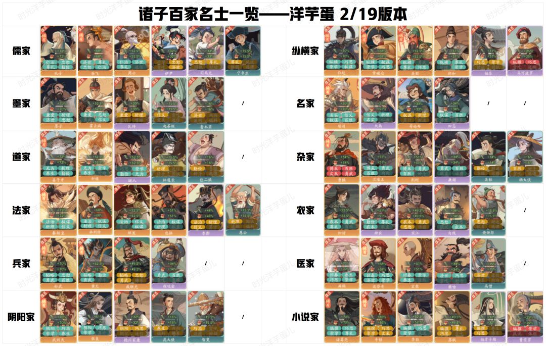 【时光攻略】诸子百家名士派遣一览