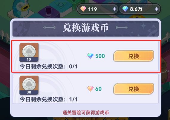投币子那里,每天500钻可以买10个币子,必买