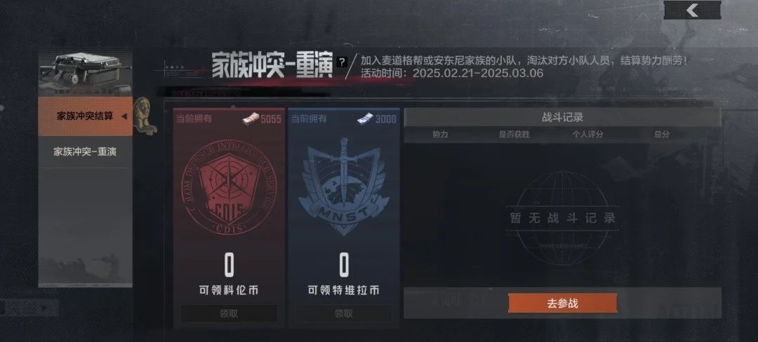 活动期间,地图界面限时开放【家族冲突-重演】活动入口,先锋们需要带入装备价值大于20000柯恩币,且支付5000柯恩币的门票费。