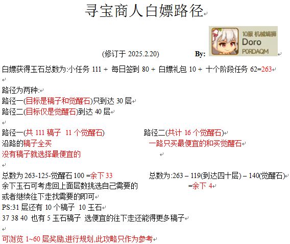 寻宝商人零氪路线图及1~60层奖励一览