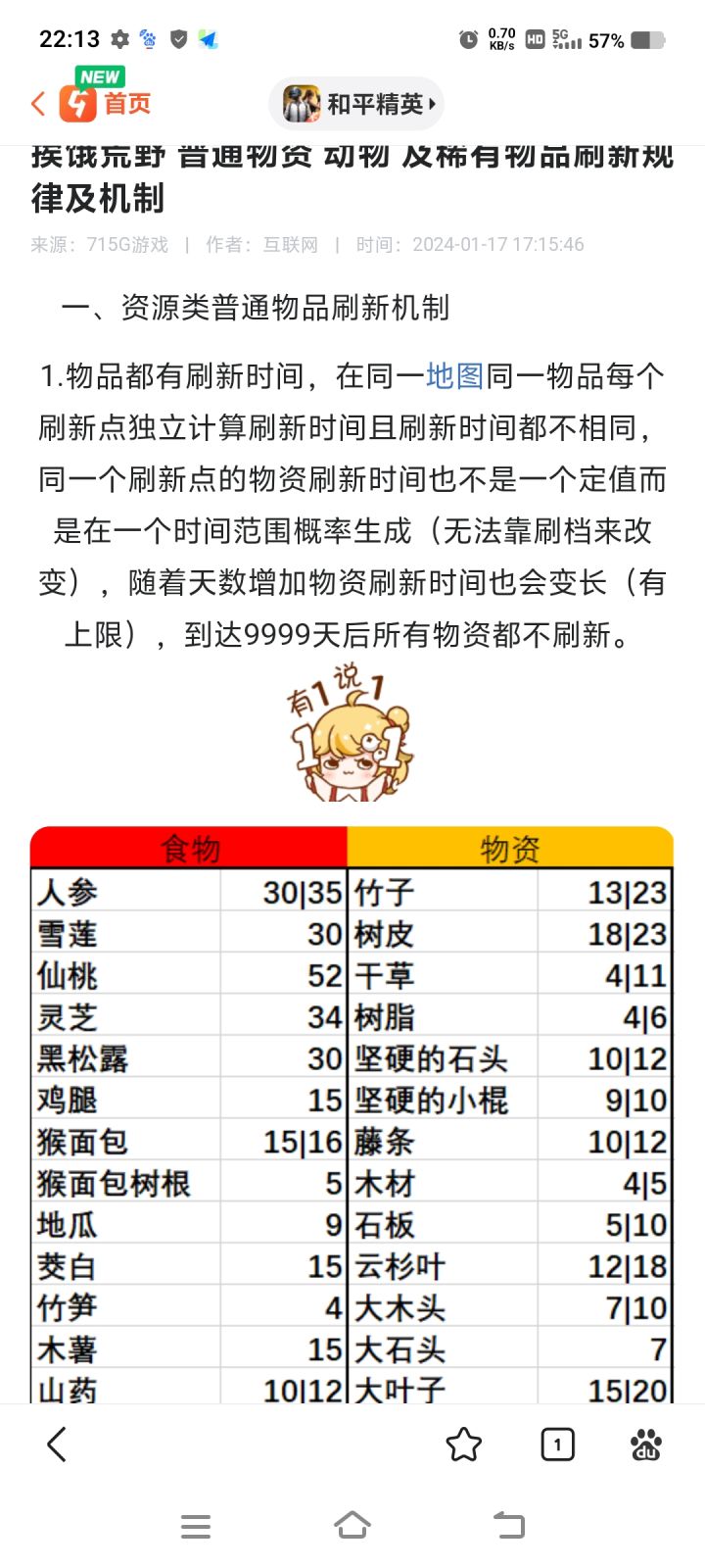 每一步都按着攻略来,这是一张比泰国丛林更好的养老图,选对了营地位置能把危险动物杀爽我把营地建在一个直接通往海的小道旁边那里面有萝卜。小道上面还有竹林两片,平时有竹子精建议在那边建营地前做个竹插因为有竹子经可以不用砍竹子但是你要猎杀危险动物。还是需要稍微砍点竹子还要找藤蔓找一些树皮不要做完做绳索或者鞋。那里有两种地形的交界地陷阱好放。从小道入口向右上角走有一片地区有地雷但是有灵芝只要走的快,地雷触发也炸不起来不穿鞋也行。如果你像我这样建了营地请带好一整套装备比如生火工具、木材、食物(最好是菜肴),因为无法修理工具所以工具要坏了就带一套做此工具的材料记得那个地方有什么材料可以适当少带。#挨饿荒野 。帮我看看我第二张图这个是不是真的?9999天真的不会刷新吗?之后刷新越来越慢?