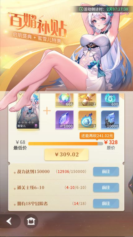 每日补给需要买:圣器突破石+超魔宝石+非凡冒险之心(因为目前只开到七天,后续如有别的再补充~)