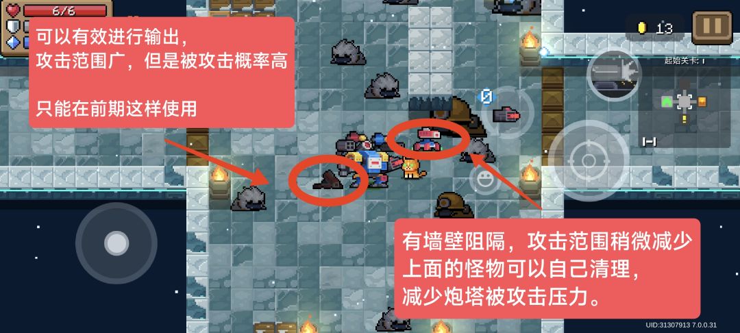 1.尽可能将炮塔安置在墙壁旁边,能够减少大概30%敌人的子弹输出(实战根据情况选择)。