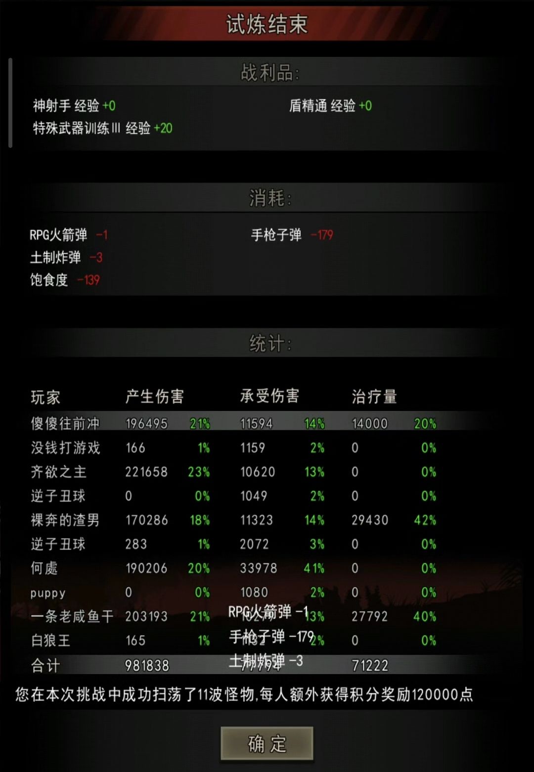 ⭐上周T的技能是破甲冲撞爆头鹰眼精准枪斗术,没错全是输出,最终数据是19w输出,污染那5个破甲挂上了4个还有一个污染贴墙看不到。