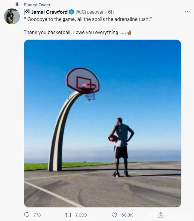2022年3月21日,贾马尔·克劳福德在个人社交媒体上宣布退役:“再见了赛场,再见了荣耀,再见了那肾上腺素飙升的感觉,谢谢你篮球,你给了我一切。”