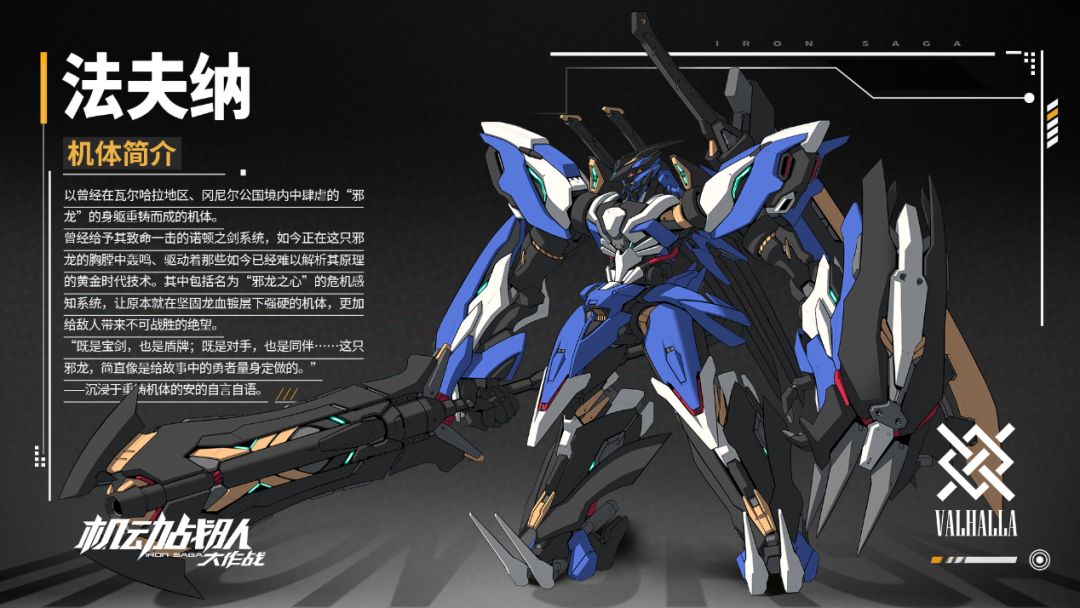 【法夫纳】:以曾经在瓦尔哈拉地区、冈尼尔公国境内中肆虐的“邪龙”的身躯重铸而成的机体。