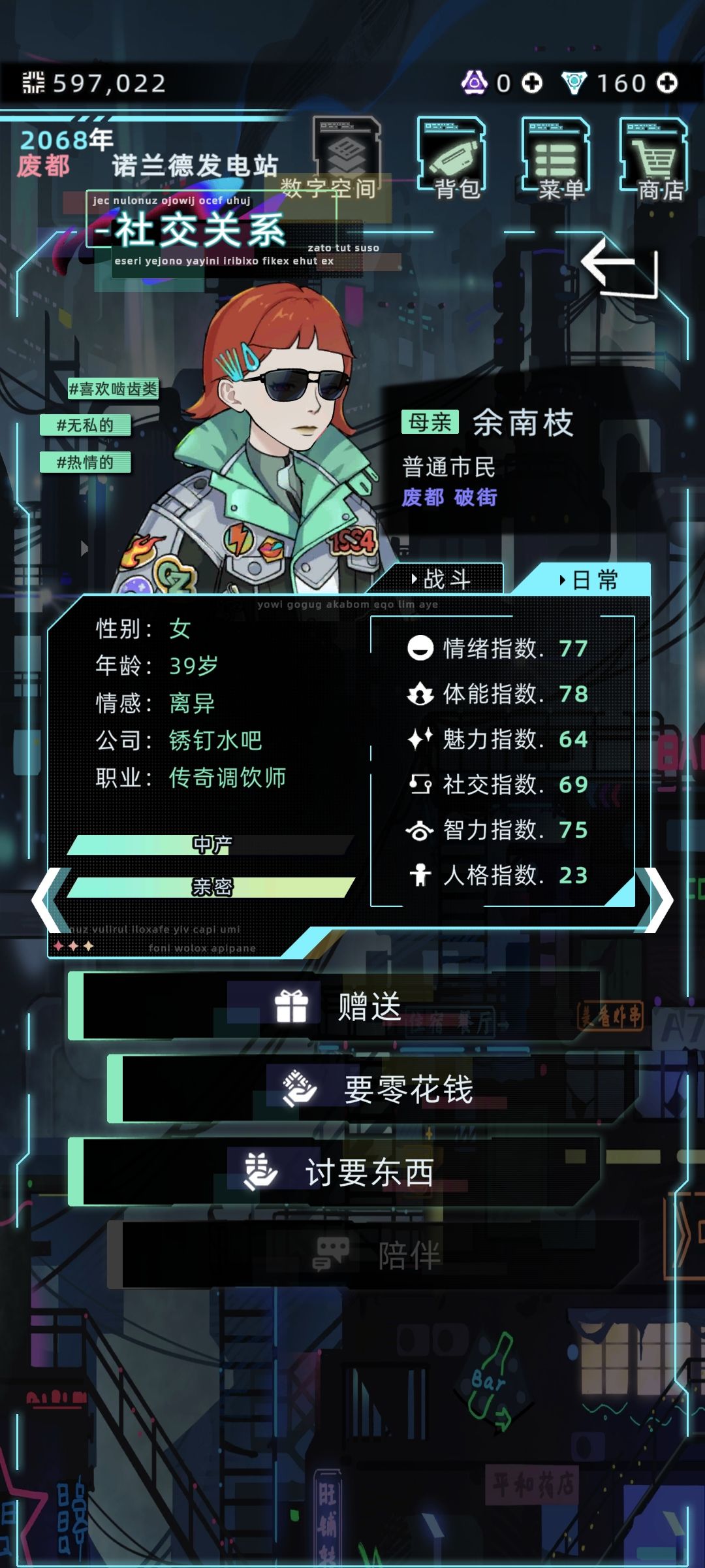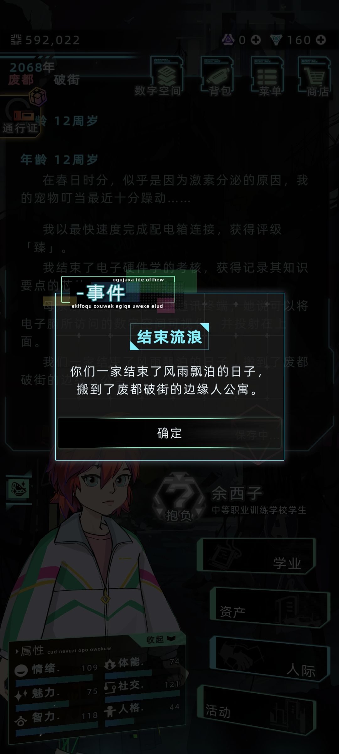 我在发电站出生,并且成长。随着时间的变换,我的父母又一次感情不和。是的,没错,他们又离婚了,虽然我劝说父亲不要离婚,但是他觉得想让我们拥有一个平和的童年,不想和我的母亲每天吵架,影响到我们,所以他毅然决然的离婚了,我再一次的永远的失去了我的父亲。但是在离婚之后,我的母亲和我的弟弟驻扎在了破街,不过不知道为什么,我却是在发电站停车场流浪~直到下一年,我终于摆脱了当前的困境和我的母亲,以及我的弟弟重逢了,恭喜我结束了流浪的生活
