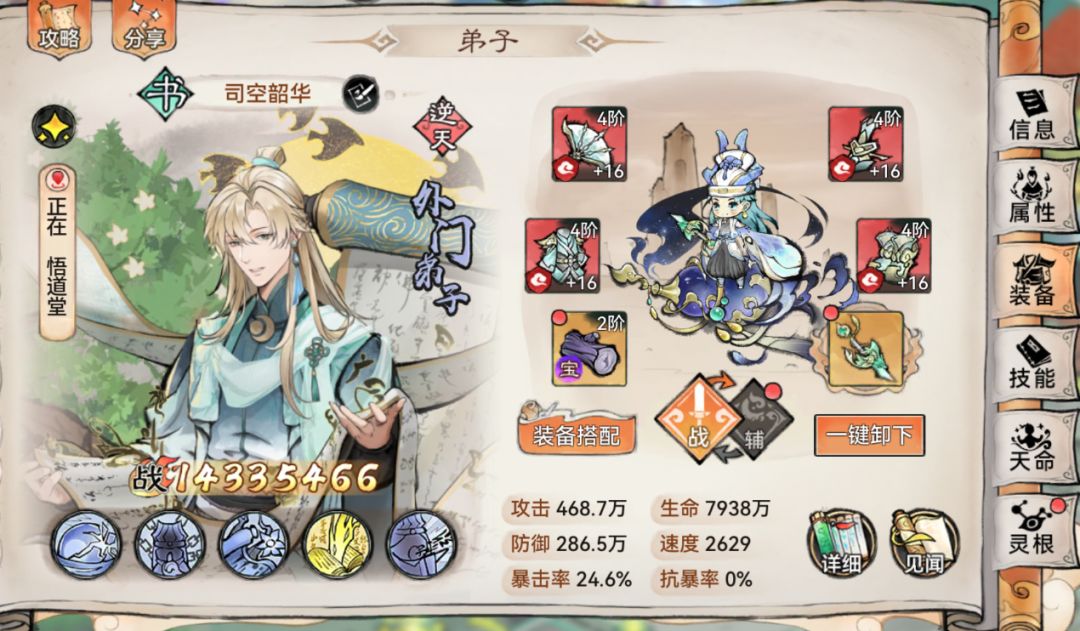 2、其他弟子的技能及装备搭配