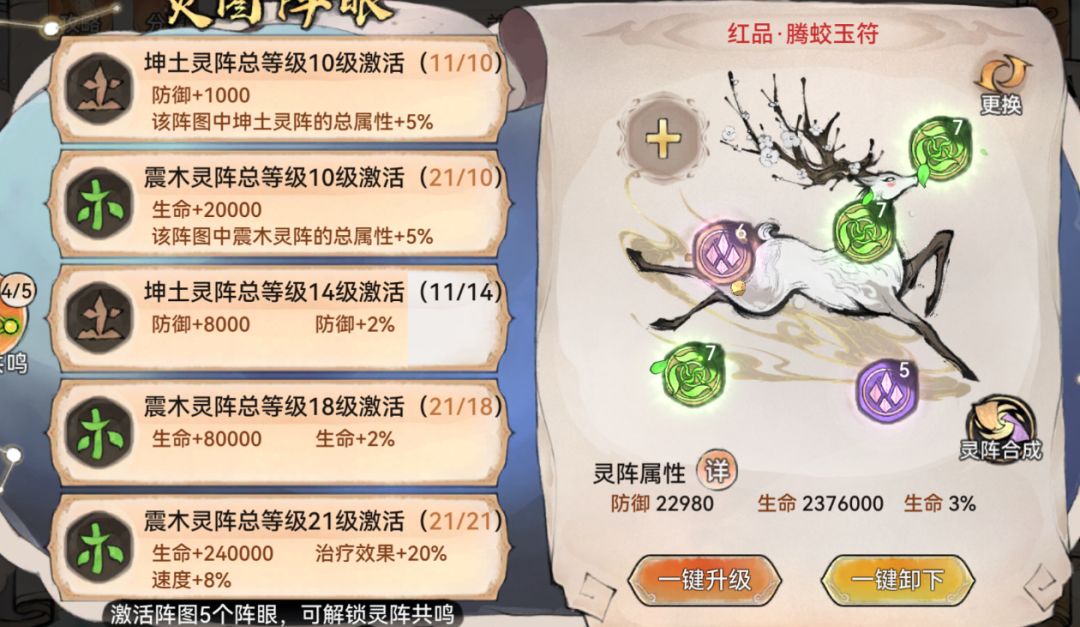 阵图建议选择鹿阵,能够为司空韶华增加百分之八的速度。两个鹿可以为司空提供百分之十六的速度加成。