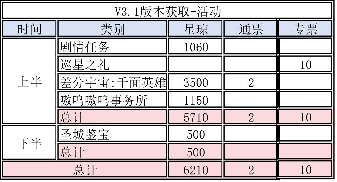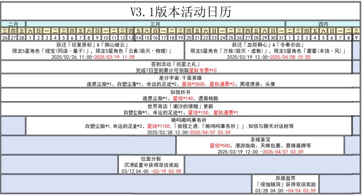 【V3.0攻略】V3.1版本上/下版本活动日历