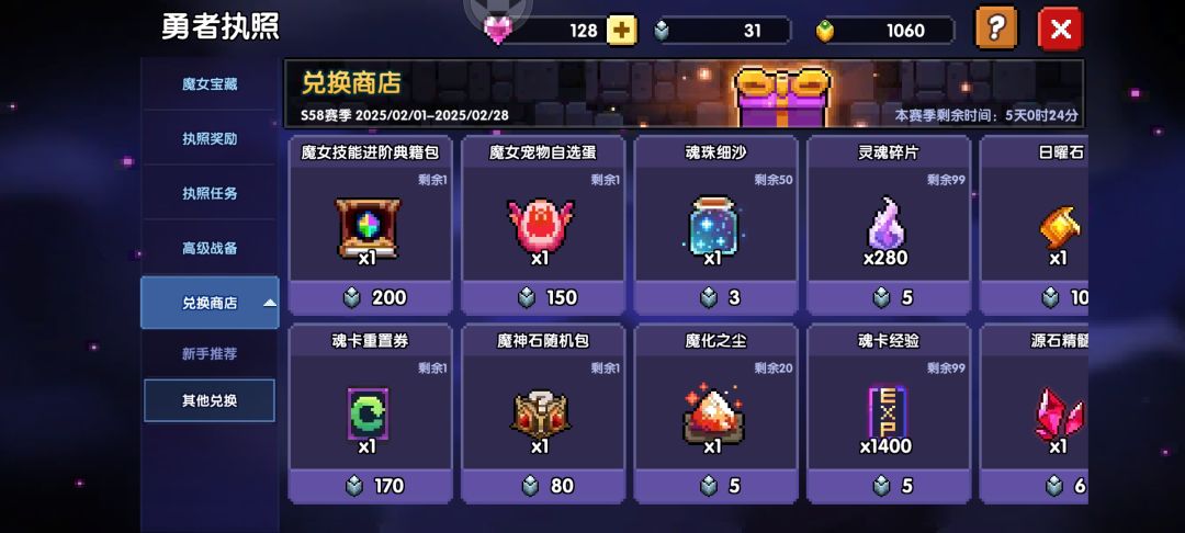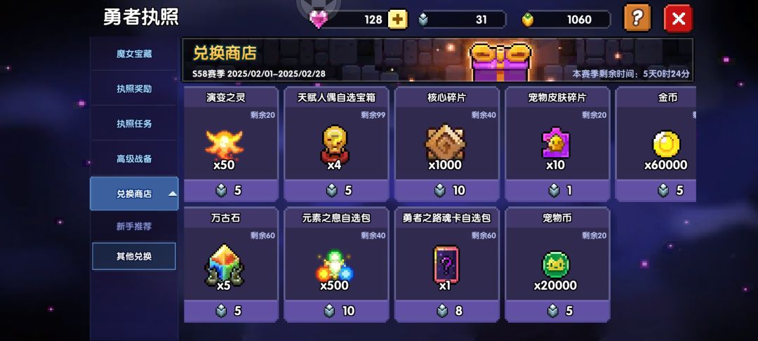 粉钻的话性价比比较高的就是买月卡还有执照了,月卡每个月30粉钻两个60,执照每个月68粉钻,执照如果资源不太缺的话不用一直买,其他的方面就是等活动商城了。温馨提示,勇者每年过年还有周年庆都会有粉钻活动,这个时候氪金比较划算,而且每次周年庆会有双倍重置。