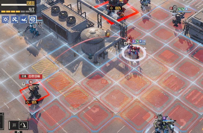 1、 地板上白色高亮区域即是凶兆范围,但是敌人进入之后,并不会在当前回合就触发凶兆效果,所以我们会有较为充裕的时间来处理场上的敌人,在同时出现多波敌人的时候,也可以优先解决靠近“区域”的敌人