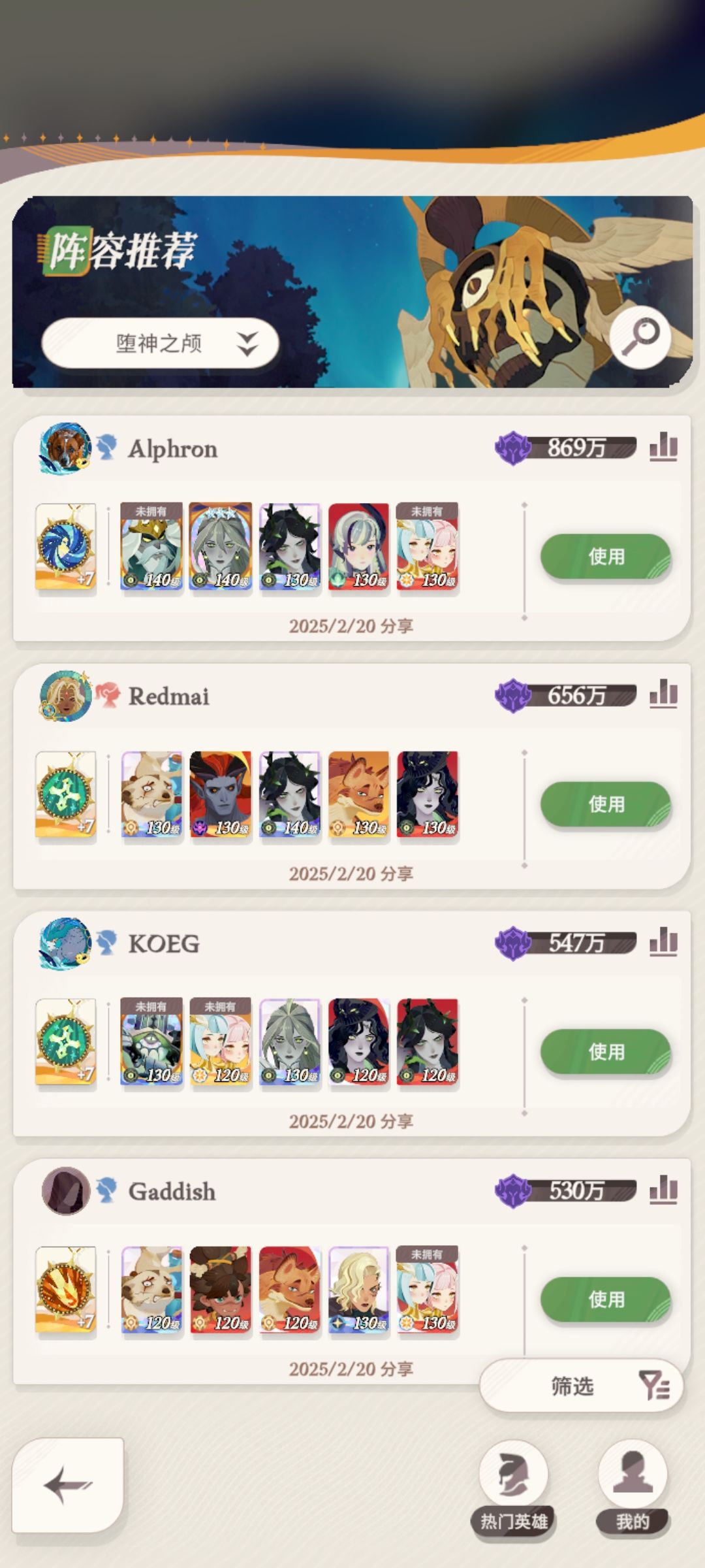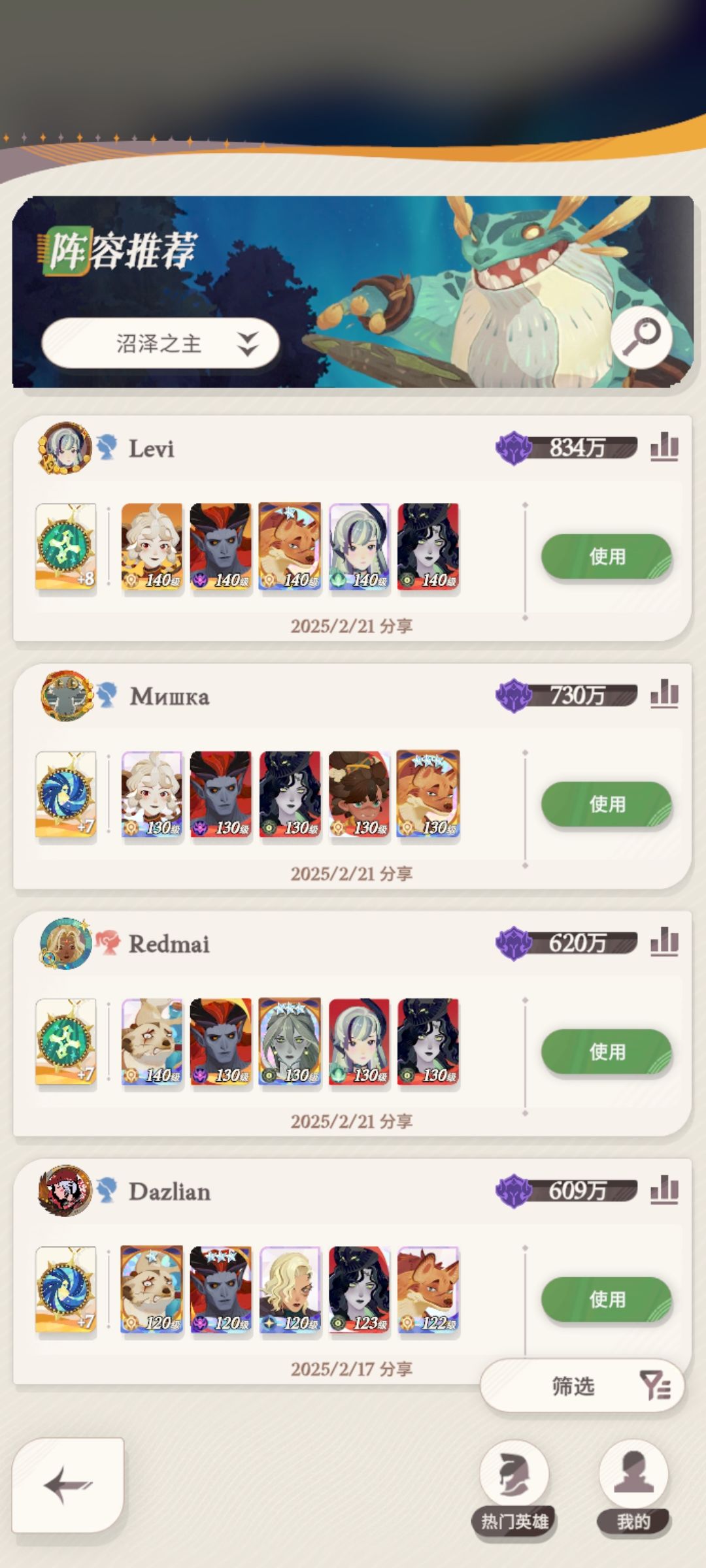 迷梦因为共鸣等级提升,boss难度提升,阵容搭配思路也是不一样的。首先基本原则还是尽可能上高练度的角色,前期练度高比是什么英雄更重要,但是练度只相差一档可以自己尝试更好的英雄。