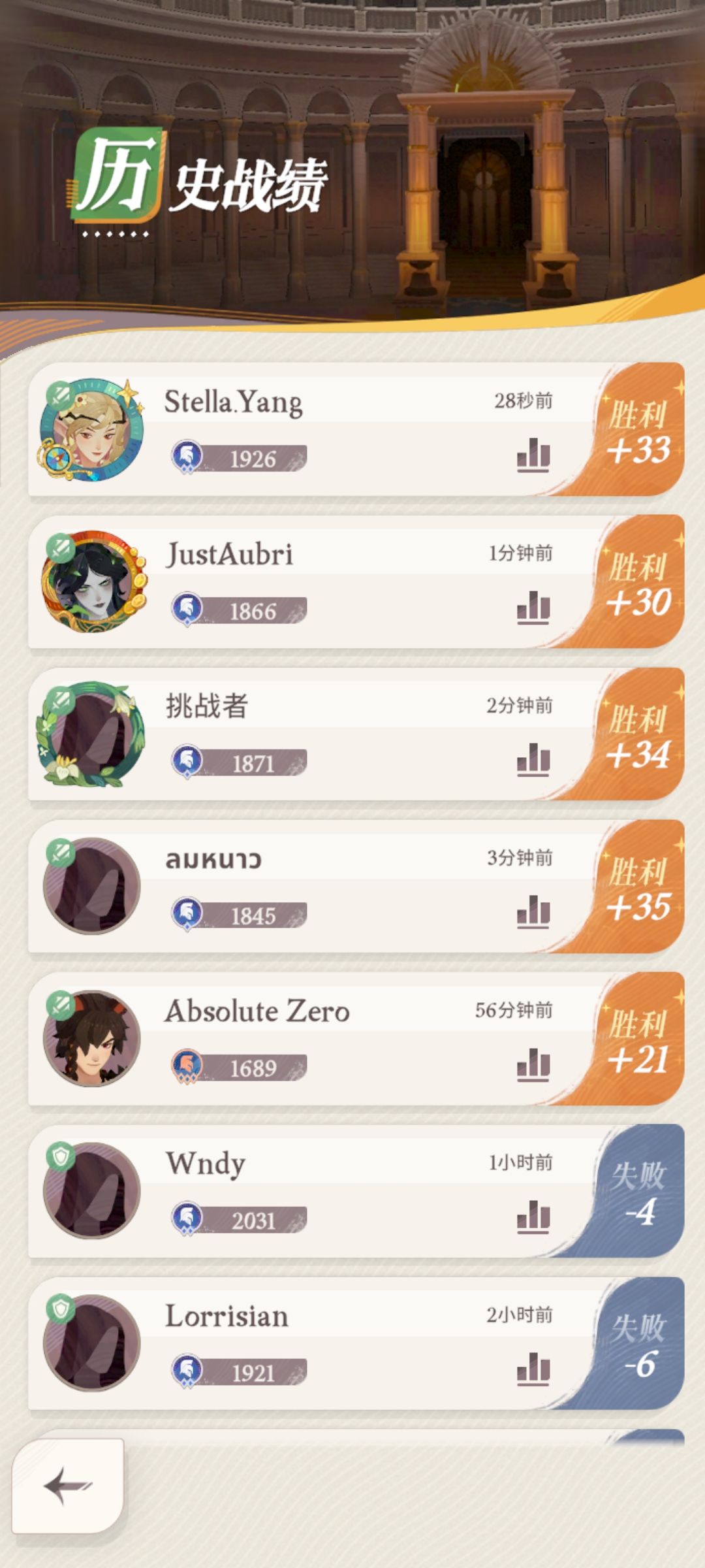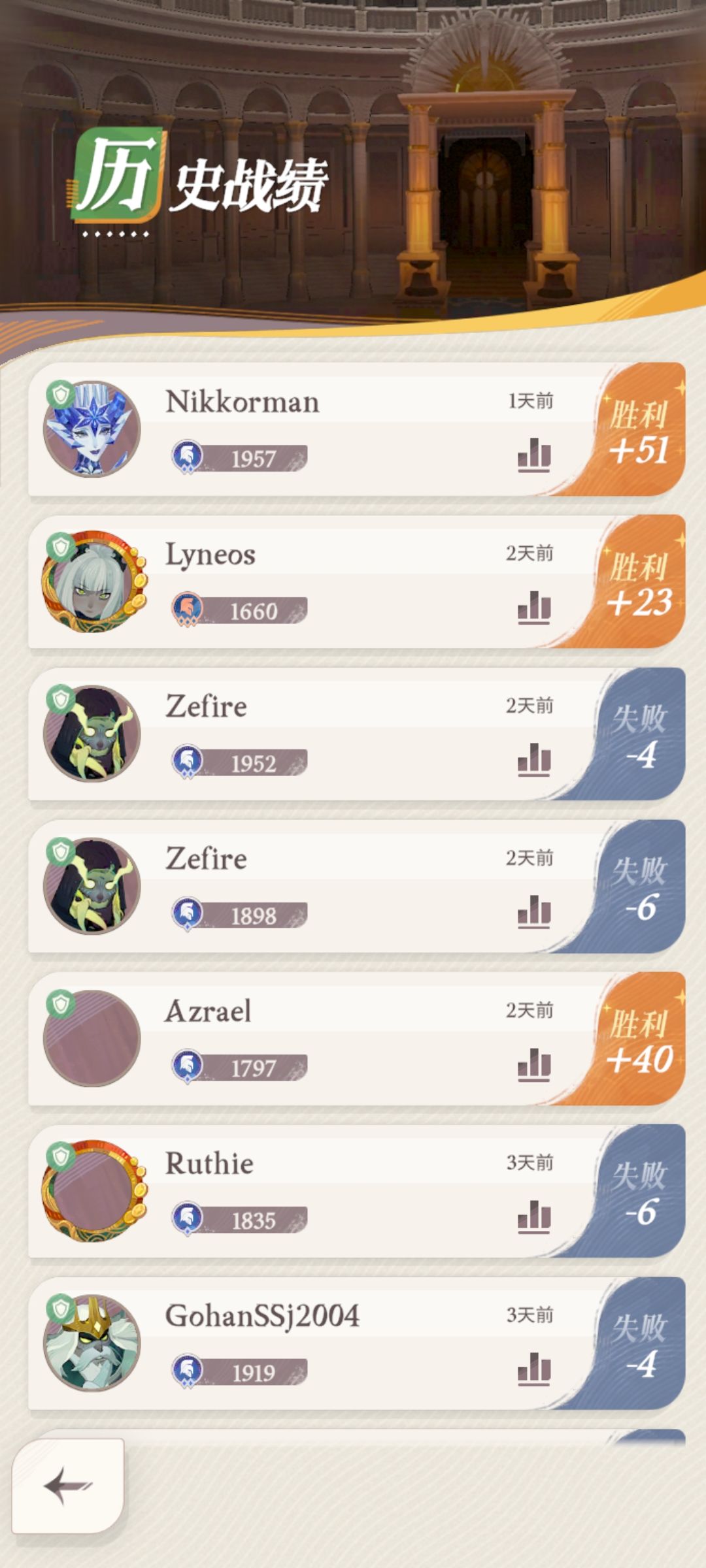 竞技场前期都尽量不要输,哪怕赢少一点也比输了好,一般我们就挑软柿子捏,下面这是我刚刚捏的几个软柿子。
