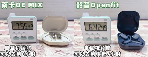 总的来说,南卡这款耳机搭配上充电盒的话,总续航可以去到24小时,韶音这款耳机的话,搭配充电盒,总续航可以去到28小时,比南卡这款要长一些。