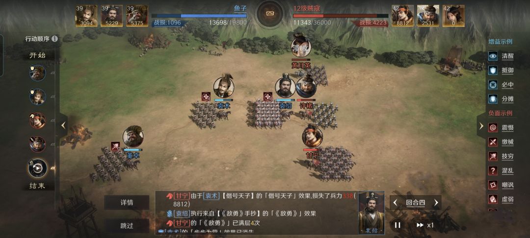 特别鸣谢游戏ID名为“鱼子”的玩家朋友,给本文提供了宝贵的创作素材。他利用自己麾下的袁术、袁绍和董卓摆出箕形阵,残余兵力状态也轻松拿捏了12级地的守军。当中值得借鉴的思路和亮点,我都给做了细致复盘。