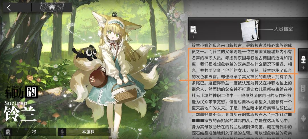 所以这个九尾狐的基因来自铃兰的父亲,他是一名东国的007没得假期神职打工人,并且也是九尾狐,但是也是因为这个九尾狐,导致铃兰也有可能要被007(每天0点上班第二天0点下班一周7天)。为了避免大宝贝和自己一样007的命运不得不让妈妈带走铃兰。