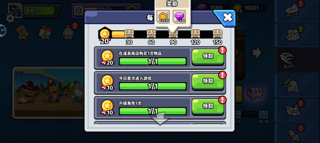 (6) 每日任务的90活跃和150活跃宝箱的双倍领取也值得一看,都能拿金币和钻石