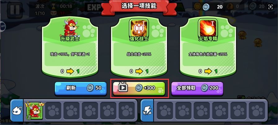 就只变成了两种,那就是给输出或者守卫,在关卡前期压力不是很大的时候,提前出输出能在快速清兵的同时,可以通过升级比较轻易的多次选到升级角色,而提前出守卫可以很方便的点出加强守卫这个能大幅度增强守卫抗伤能力的技能。