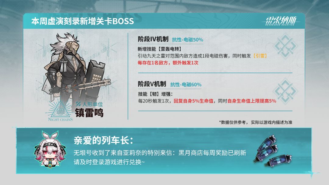 本周黑月商店货物及异构厄枝已刷新,请列车长及时登录游戏进行查看~