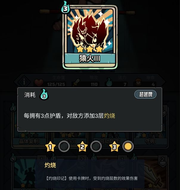 种族天赋:“猴毛”一个靠回合数叠甲的天赋,冒险时用不错,可以搭配张“盾击”使用,不容易翻车。如果想抵消扣血效果,可以找个宝物“冲天辫”搭配使用。