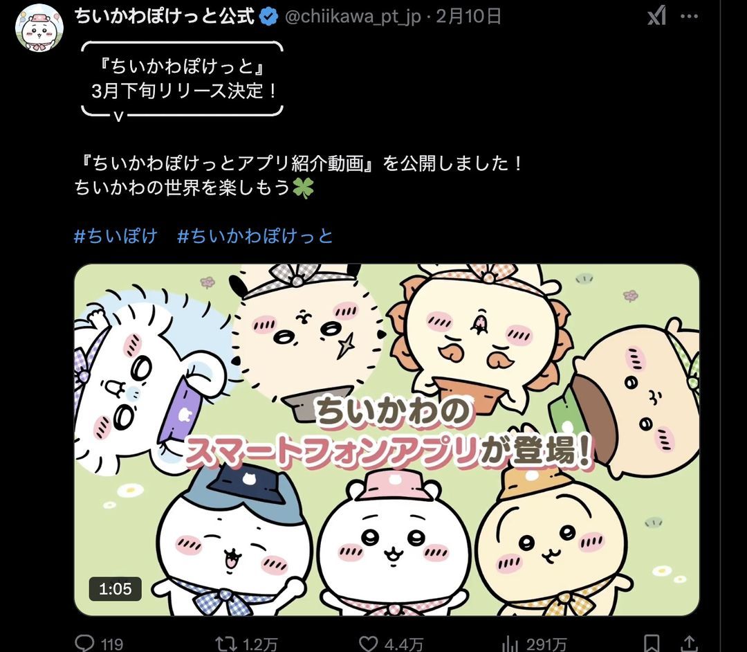 最近官方宣布 Chiikawa Pocket 的上线时间为三月下旬。如图官方的发文:
